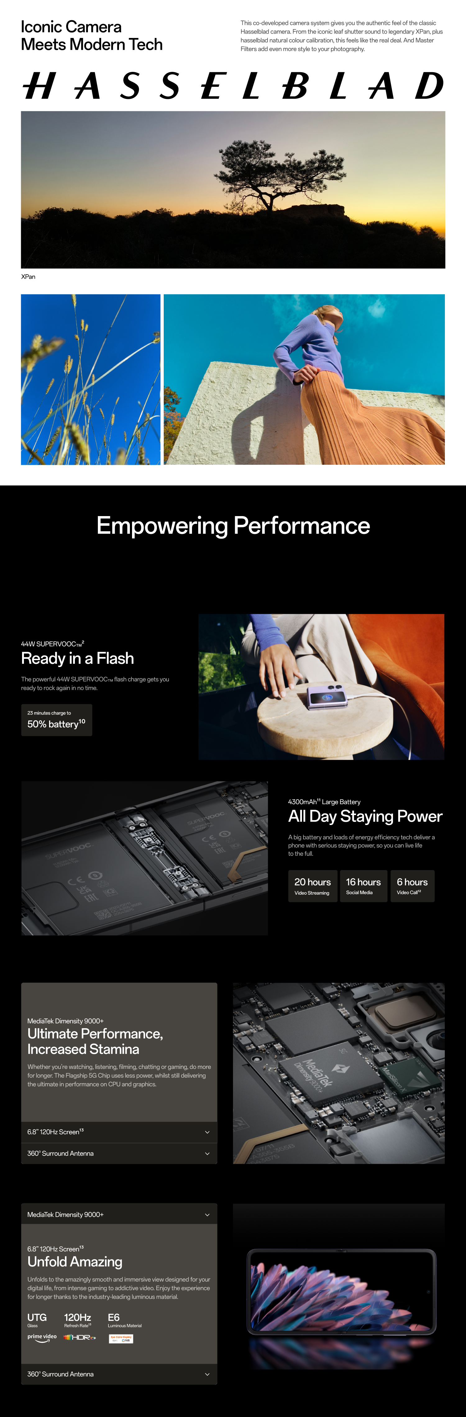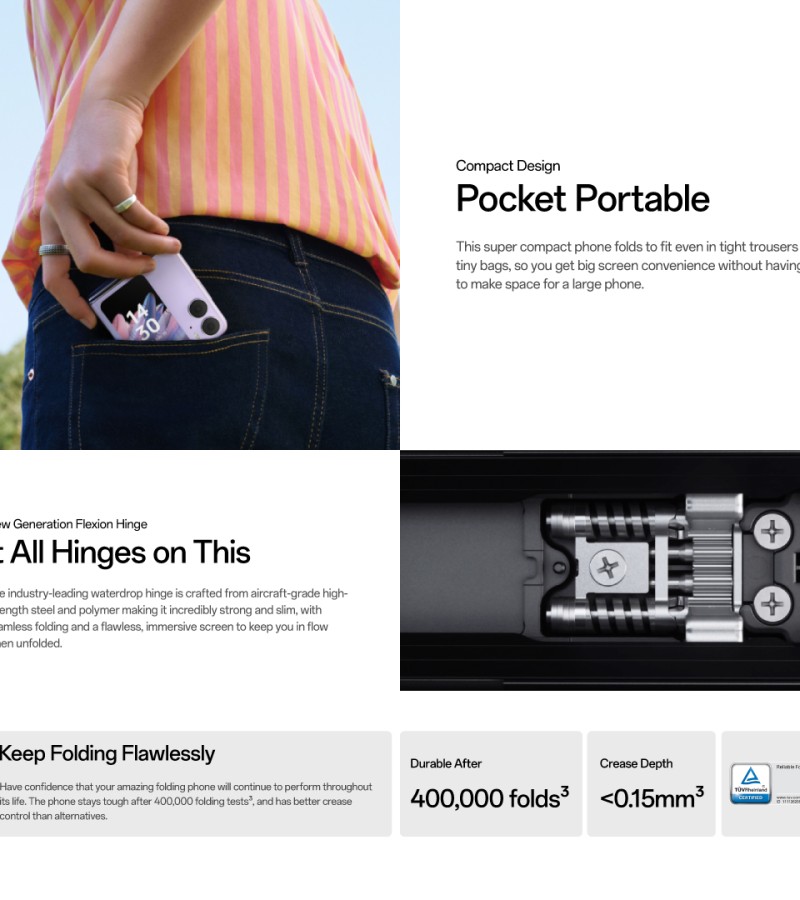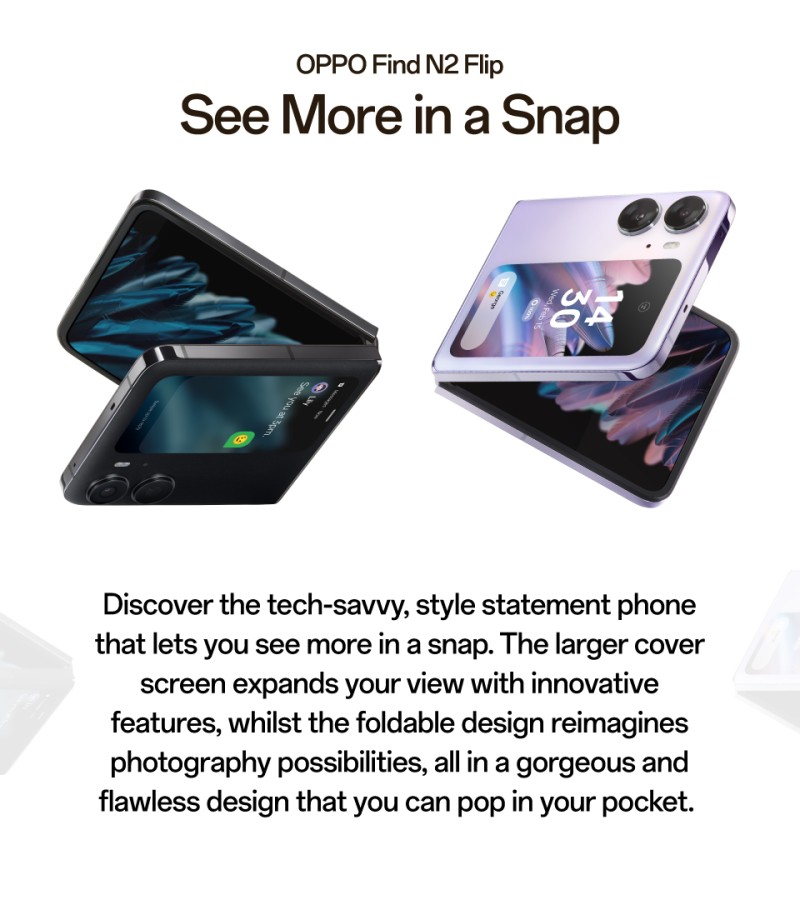 Discover the tech-savvy, style statement phone that lets you see more in a snap. The larger cover screen expands your view with innovative features, whilst the foldable design reimagines photography possibilities, all in a gorgeous and flawless design that you can pop in your pocket.