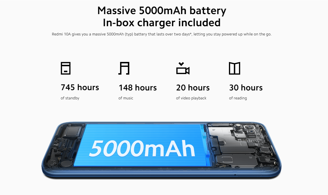 Redmi 10A comes with a dedicated microSD card slot and support up to 1TB expandable storage, store your precious photos and videos with ease.