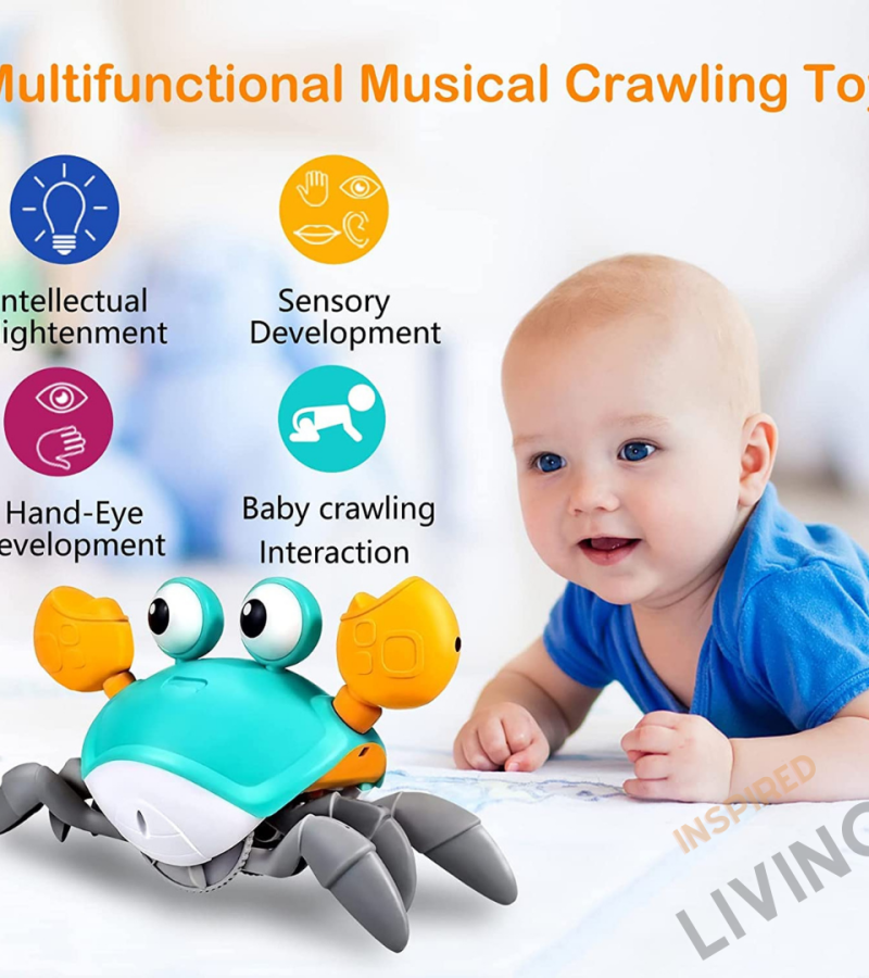 爬行螃蟹婴儿玩具-通过音乐和灯光自动避开障碍|圣诞礼物|圣诞礼物/生日礼物