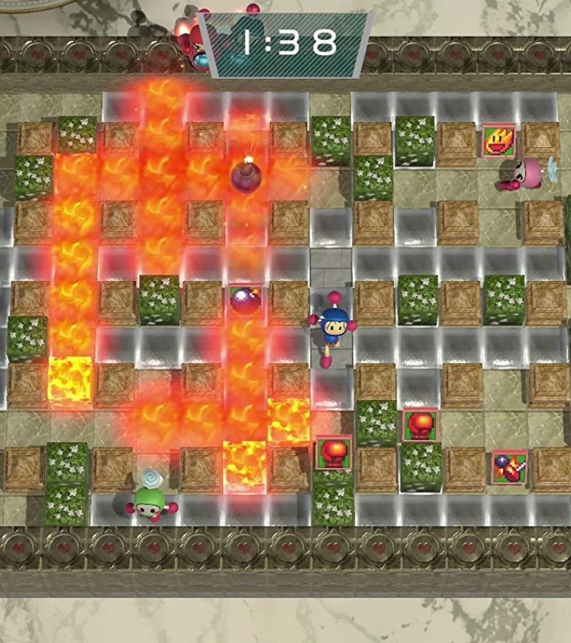 Super Bomberman R makes full use of the Nintendo Switch system capabilities, which enables gamers to play wherever, whenever and with whomever they choose. Super Bomberman R offers a 'Battle' mode where up to eight players are dropped within a maze until the 'last man standing' is declared the winner. There is also a 'Story' mode where one to two players work cooperatively to clear a series of 50 stages in order to save the galaxy.